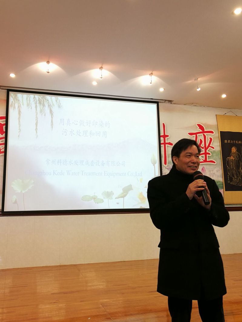 为发挥“常州市纺织校会(企)战略联盟”作用,助推专业建设与课程改革,深入做好产教深度融合,助力人才培养与师资建设工作,3月6日上午,纺织学院陶丽珍院长、高妍副院长及环境工程技术专业老师一行,带领环保专业学生来到江苏省高新技术企业常州科德水处理成套设备有限公司进行现场学习与技术交流。科德公司李春放总经理进行了热情接待,他从中国传统国学文化入手,介绍了企业文化及公司的经营理念和发展历程,教导学生要心怀感恩,先学会做人,再学会做事。他带大家参观了印染专业供水处理装置、污水回用处理装置、过滤处理装置等,并做了《用真心做好印染的污水处理及回用》报告。本次活动还得到常州纺织工程学会张国成会长的大力支持,他也到场对学生进行了学习指导。下午,学生们又来到天宁区的常州旭荣针织有限公司,在环保科科长刘慧清工程师带领下参观学习了印染废水处理工艺及中水回用工艺。此次活动,让老师和学生们都感到受益匪浅,学生们对未来自己未来从事的工作岗位职业能力要求有了深入的认识。