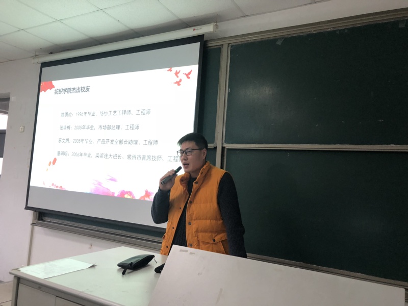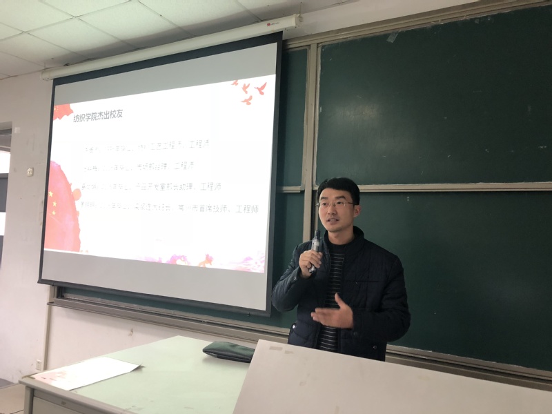 为激发2018级同学的学习动力,让同学们明确未来目标与方向,12月5日下午,纺织学院优秀校友事迹报告会在4A301教室举行,学院2018级各班级学生骨干及入党积极分子参加了报告会。