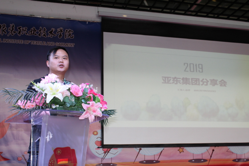 会议第二阶段,亚东(常州)科技有限公司总经理薛梁从企业文化营造、产品结构、发展方向等诸多方面做了详细深入的宣讲,并就纺织行业未来发展趋势做了交流。宣讲现场,薛总还与我院学子进行现场互动,回答了同学们提出的问题。