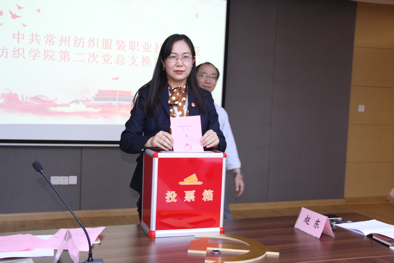 随后,学校党委委员、副院长赵玲珍同志讲话。她首先代表学校党委向换届大会的胜利召开和新当选的纺织学院党总支委员会委员表示祝贺,同时对纺织学院党总支未来的发展提出四点意见。一是要加强思想政治建设,坚定正确的政治方向;二是要找准困难根源,积极寻找发展新思路;三是要加强组织建设,稳固事业发展的根基;四是要加强作风建设,营造风清气正的育人环境。最后,换届选举大会在雄壮的国际歌声中闭幕。