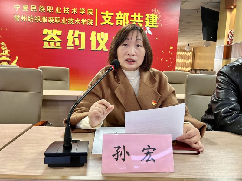 首先,李奇志介绍了宁夏民族职业技术学院近年来党建工作的开展情况以及取得的一些成效,他表示宁夏民族职业技术学院与我校友谊深厚,结对共建将为双方加强党建工作提供一个很好的平台,希望通过本次签约仪式能进一步深化两校之间的合作,充分发挥常州纺织服装职业技术学院作为东部发达地区高水平高职学院对西部宁夏民族职业技术学院在党的建设、办学治校、校企合作、专业建设、师资队伍建设等方面的示范引领作用,同时也希望双方能建立完善工作联系制度,商定并落实合作开展的工作计划,充分发挥党总支战斗堡垒和先锋模范作用,实现优势互补、资源共享、高质量发展。