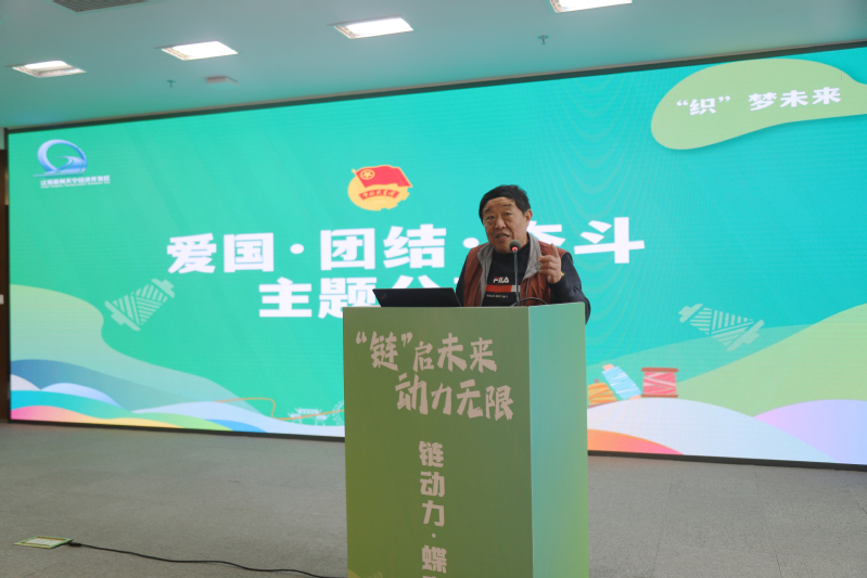 会上,裕源灵泰面料科技有限公司、东方伊思达染织有限公司、江苏华崛智能科技有限公司、江苏常环环境科技有限公司等企业代表进行了专题发言;常州市纺织工程学会会长张国成代表行业作为专题发言;我校党委书记吴访升围绕产教融合、科教融合作了主旨发言。他从“新、深、高”三个方面进行了阐述:一是政校企行通过链盟党建平台,组织联建、阵地联用、人才联育、发展联动,推动产业链与组织链、人才链、创新链、服务链深度融合,切实把党的政治优势、组织优势转化为企业竞争优势、产业发展胜势。二是产教融合。学校与链盟企业联合制定人才培养方案、标准,合作开发教材课程,提高学校人才培养适应性,支撑配合企业转型升级;三是科教融汇。政校企行共同推进科技创新与产业创新深度对接,通过组建创新中心、战略发展研究院等,把科技成果转化成产品、商品,不断形成新质生产力。