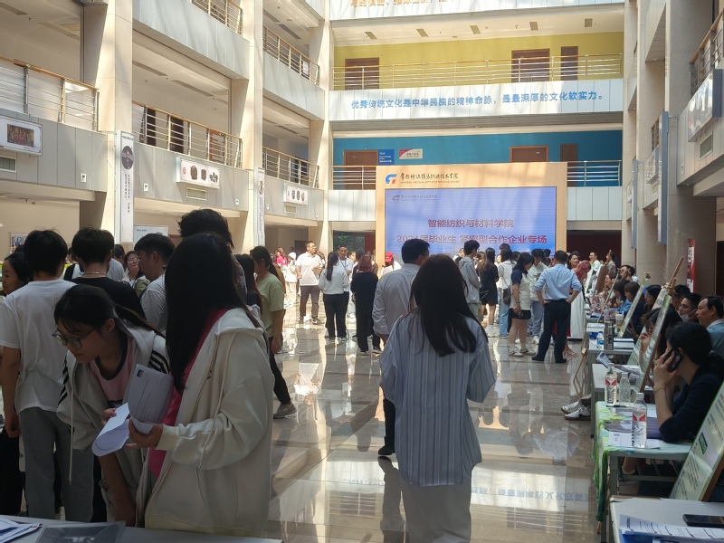 智能纺织与材料学院高度重视毕业生就业工作,党政领导、党支部书记、专业带头人和教研室主任、专业教师通过访企拓岗等多种途径,了解纺织企业人才需求,邀请纺织特色明显、覆盖层次多元的紧密合作型企业。同时,为进一步加强就业育人工作,学院党总支将本周的班会课搬到招聘现场,为大一、大二的学生开展了一次以就业为主题的班会教育。今后,学院将进一步组织就业帮扶、企业宣讲等系列活动,精准掌握毕业生就业意愿和就业困难,提供有力的就业指导和帮扶,为毕业生实现更充分更高质量就业助力护航。